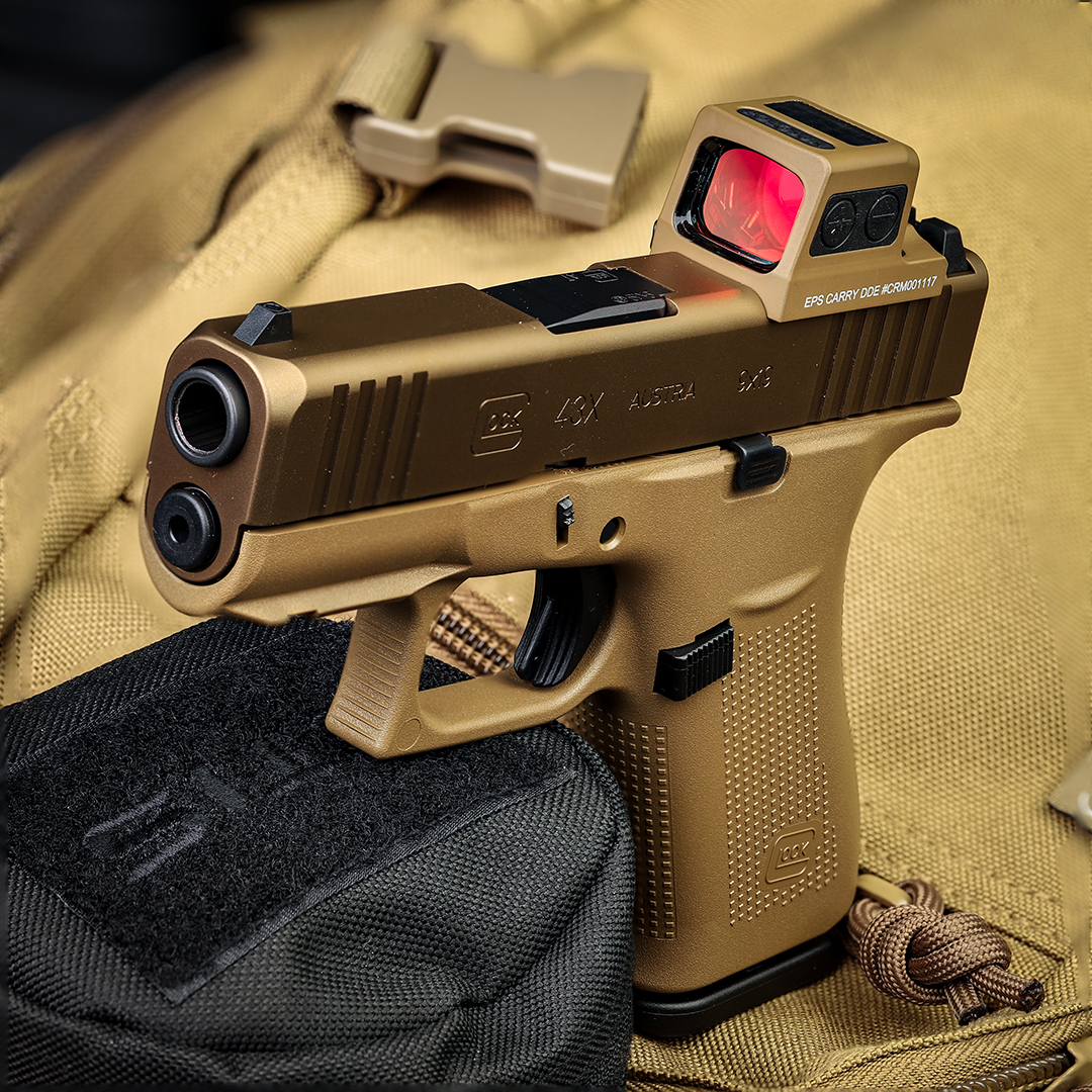 Kompaktní samonabíjecí pistole Glock 43X MOS v atraktivní barvě Coyote TAN nabízí ideální kombinaci štíhlého profilu, vysoké spolehlivosti a moderní výbavy. Díky systému MOS pro montáž kolimátoru a liště pro příslušenství je perfektní volbou pro skryté nošení i osobní obranu.